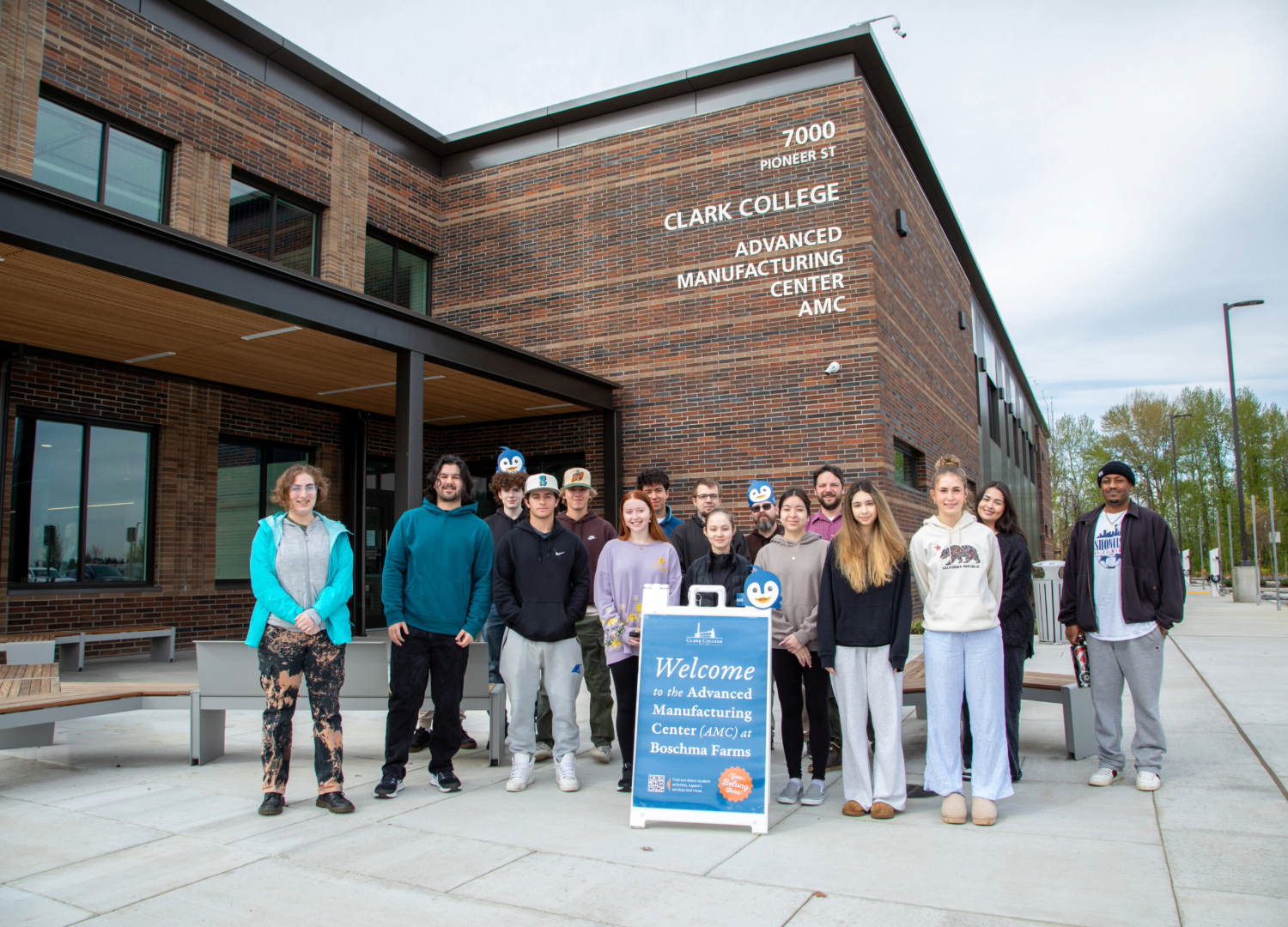 Spring term 2025 at Clark College debuted a milestone far from the main Vancouver campus: the soft-opening of the Advanced Manufacturing Center (AMC) at Boschma Farms in Ridgefield. Balloons and a welcome sign greeted the very first arrivals on April 7.