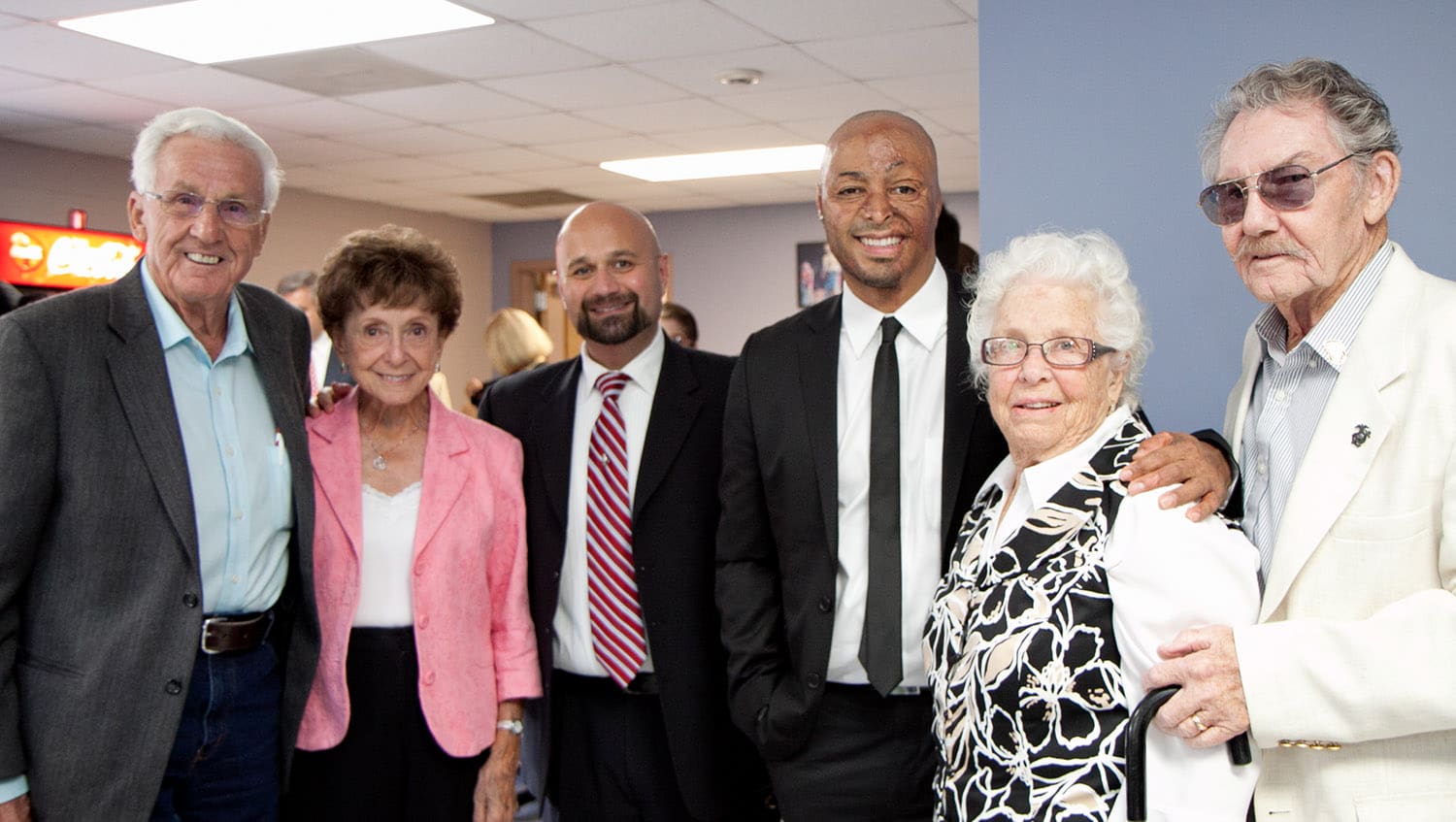 - Left, Al Bauer, Maggie Culbertson Bauer, Ara Serjoie, Army veteran and speaker J.R. Martinez, and Alice and Lyle Leach at Clark’s 2012 commencement.
